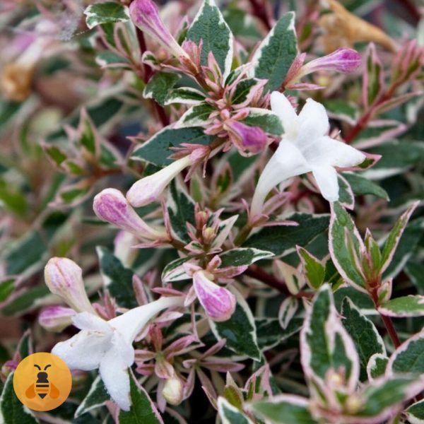 Abelia – grandiflora variegata je kompaktan zimzeleni grm koji krasi svaki vrt svojim šarenim listovima i obilnim cvetanjem. Visina grma dostiže oko 50–90 cm, dok mu je širina između 80 i 120 cm, što ga čini idealnim za živice, žardinjere ili grupne sadnje. Listovi ove abelije su karakteristični po kombinaciji zelene i krem boje, koja tokom sezone prelazi u bogatije nijanse žute i zelene, dodajući posebnu dekorativnu vrednost vašem prostoru. Tokom leta, grm razvija sitne bele do ružičaste cvetove koji privlače pčele i leptire, čineći ga lepim i korisnim za biodiverzitet u vrtu.